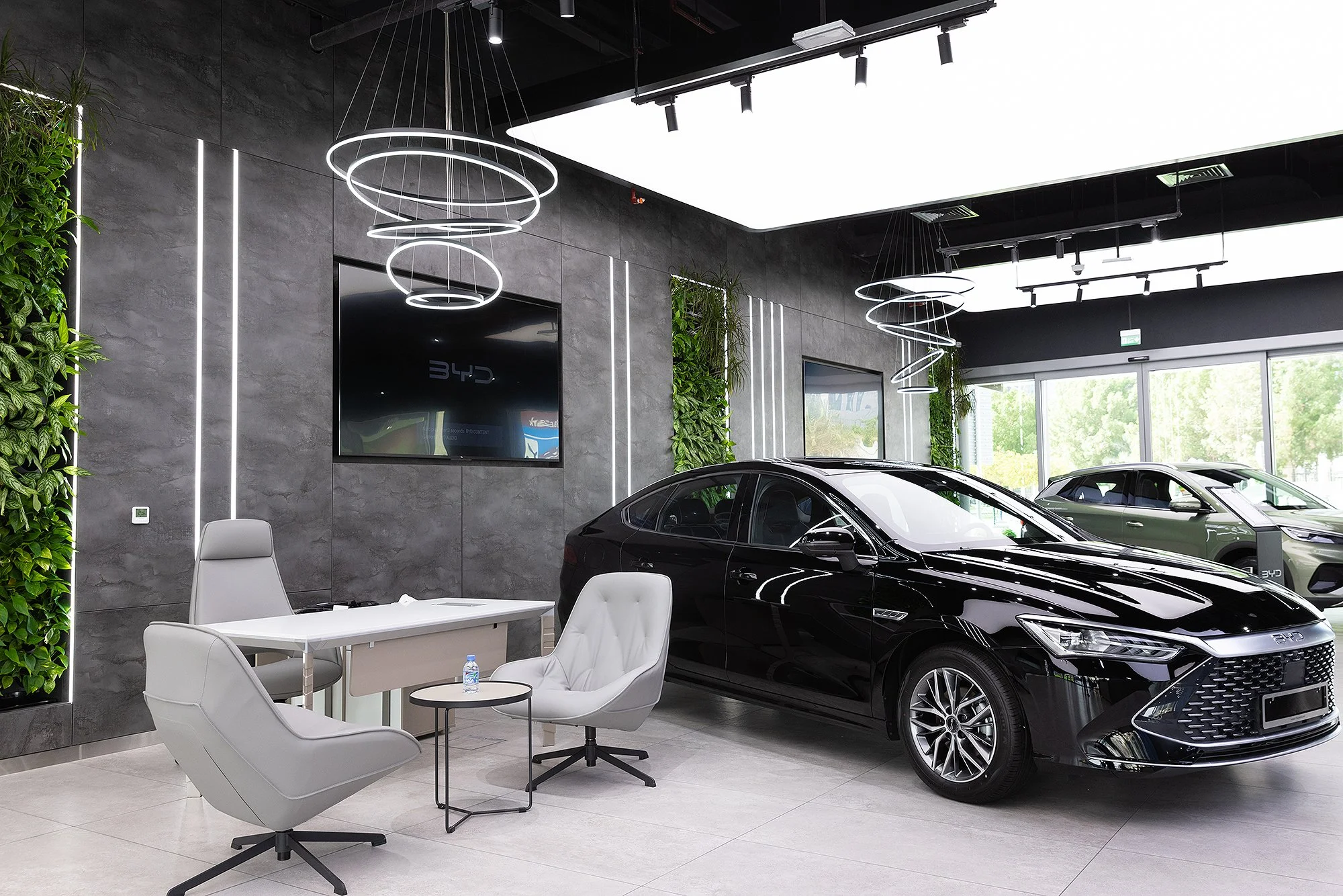 Bright Spaces designed the interior of the 300 m² BYD showroom, located in West Bay, creating a sleek and contemporary environment that reflects the brand’s innovative spirit and commitment to sustainable mobility. The design emphasizes clean lines, dynamic lighting, and a refined material palette to showcase the vehicles in an engaging and premium setting.